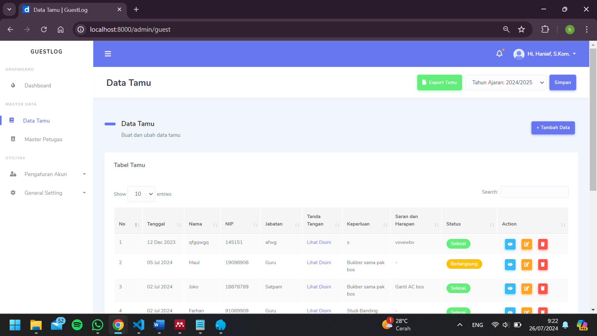 Laravel-based School Guestbook