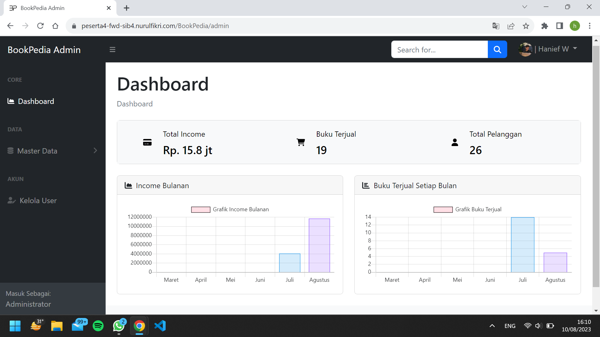 Become a project manager that led the team. BookPedia was a Laravel based website that can run the bussiness process integrated with Midtrans, and can communicate using APIs.