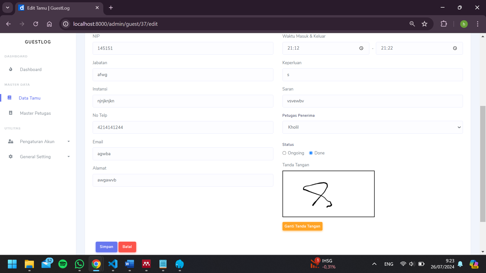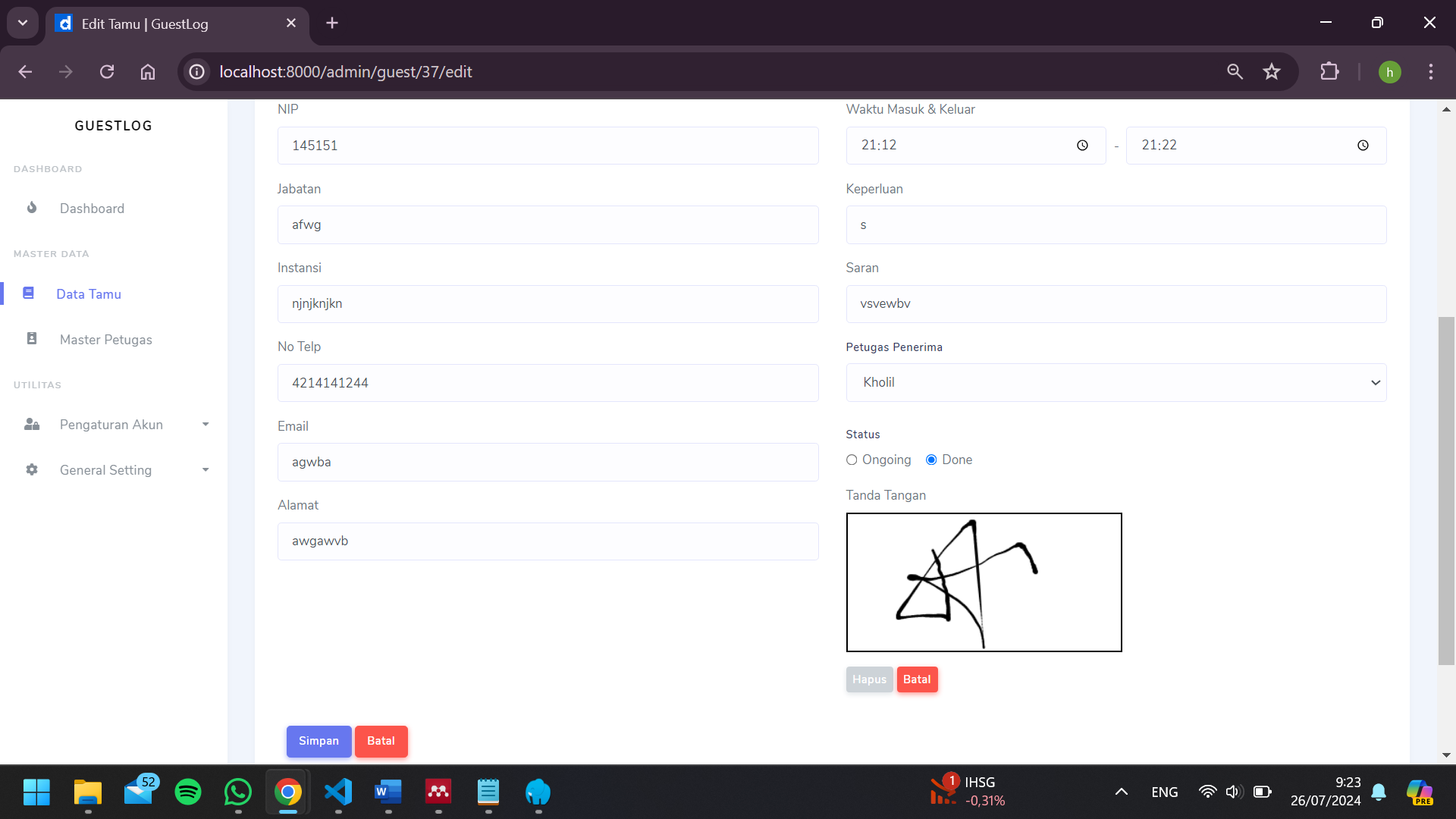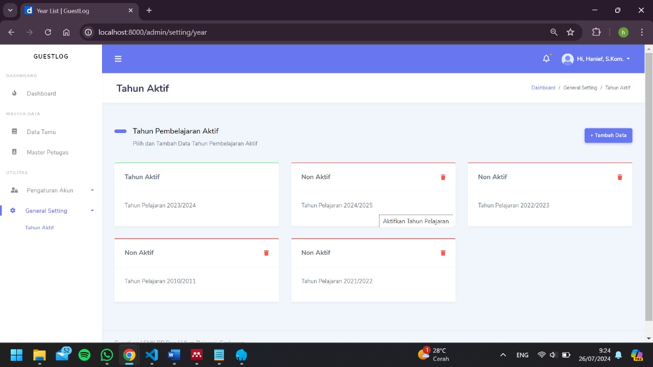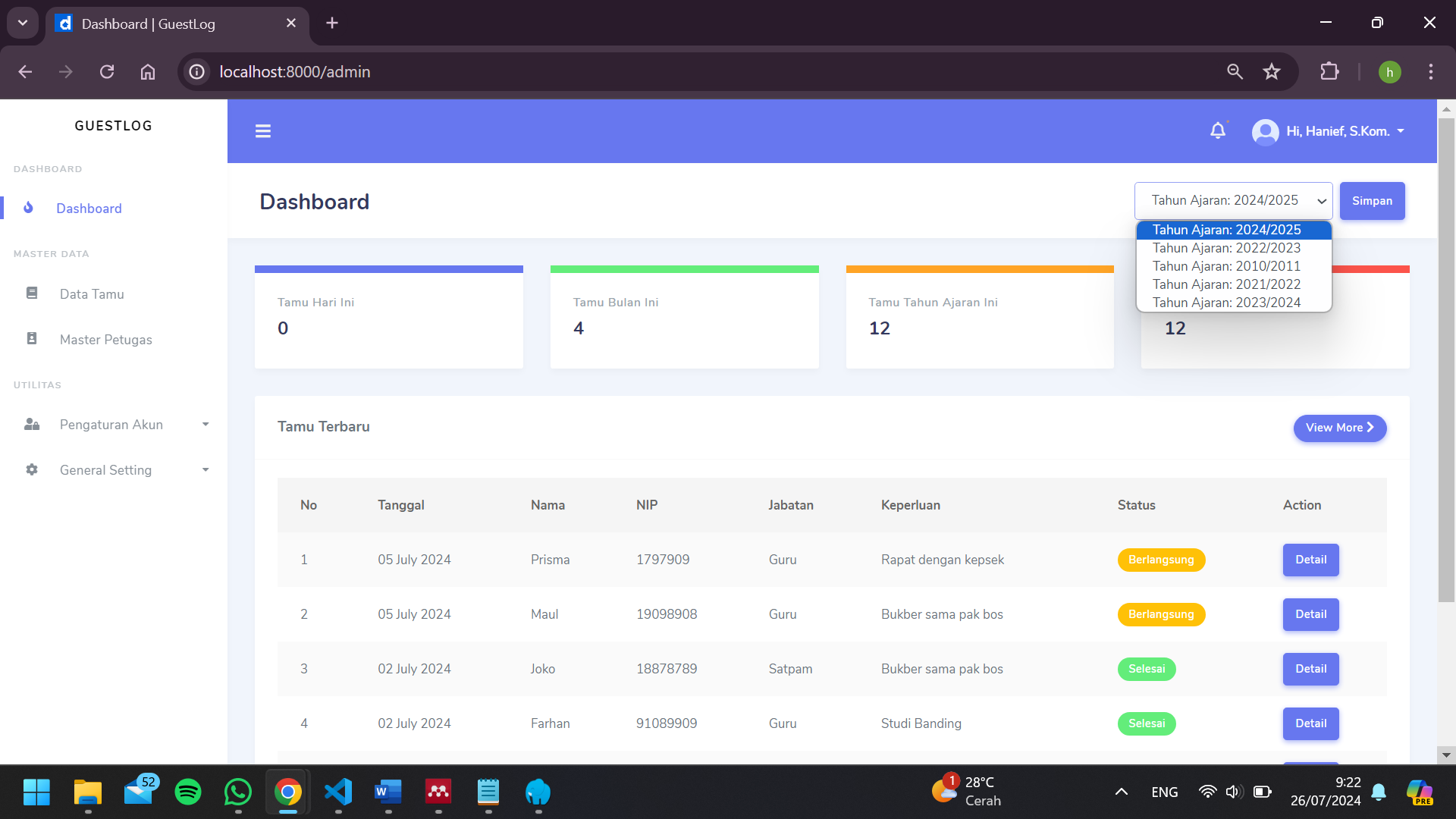 GuestLog was a Laravel-based website designed as a sustainable application capable of recording guests.